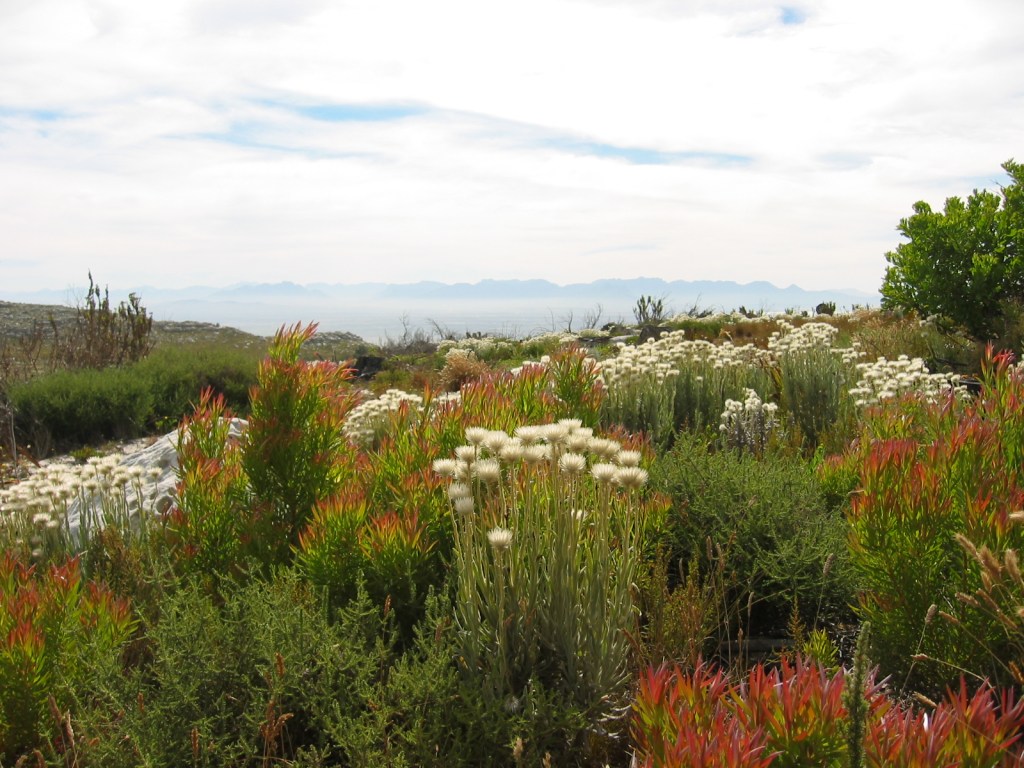 A Mediterranean ecosystem that is frequently compared to that of California, Australia and, of course the Mediterranean, it has its own set of unique species that are adapted to its acid soils and winter rainfall.  It is indeed so special, with 8200 species in an area 1/3 the size of Britain, that in 2004 it was declared a World Heritage Site.  One of the gems in the crown is Kirstenbosch gardens.  Situated on the back slopes of Table Mountain this garden displays many of the unique and beautiful species found in Fynbos and in other flora of South Africa.  Many of these species are popular, not only locally, but around the world and have been developed for horticulture.  As a site with multiple uses, providing access to mountain walks, acting as a music and art venue, Kirstenbosch is popular with locals and tourists alike.When walking on Table Mountain there are many extraordinary plants to see.  Families that are common in Fynbos and relatively rare globally are Proteaceae,