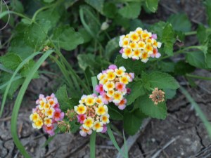 The popular Cenzio (Leucophyllum frutescens) plays host to the larvae of the Theona checkerspot and the ubiquitous Lantana sp. offers